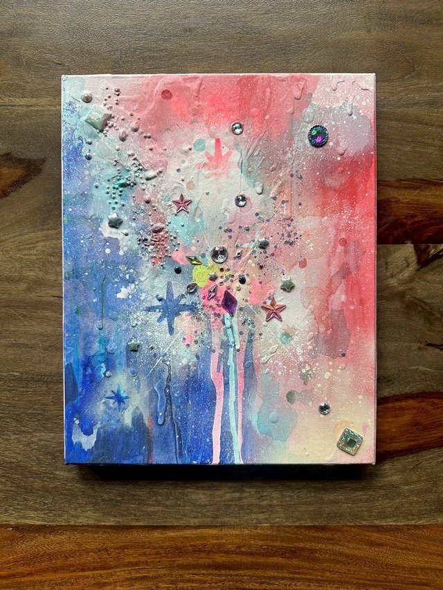 個展【君は明けに生まれ、宵に還る】 サイズ:273mm×220mm×幅17mm 素材:キャンバスにアクリル、メディウム、ラインストーン 作品の発送は展示終了後になります。